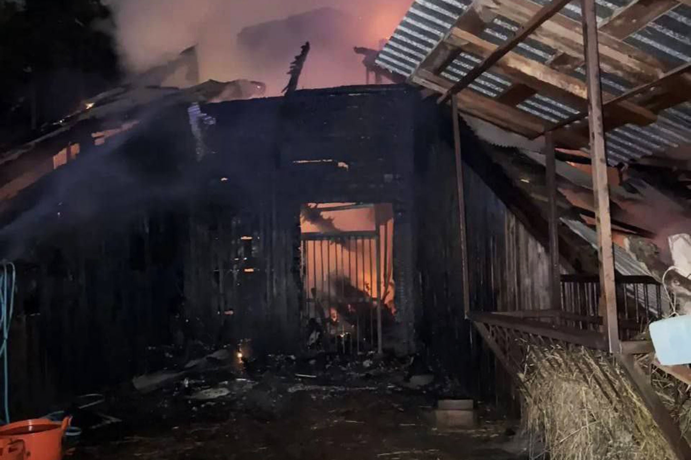 В настоящее время специалисты осуществляют разбор и проливку сгоревших сооружений.