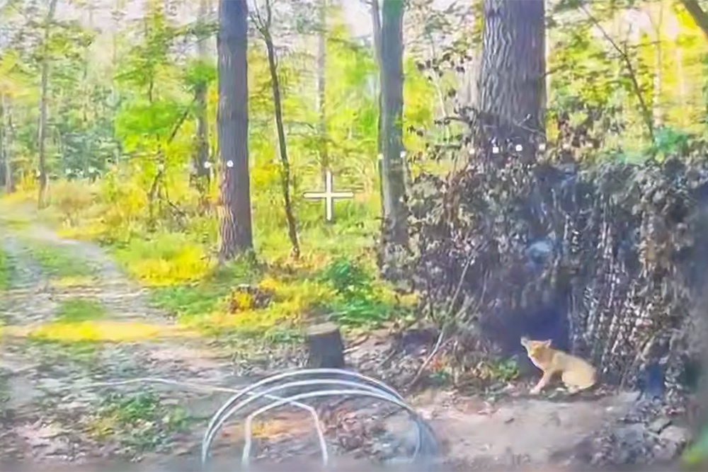 Оператор российского FPV-дрона собирался атаковать блиндаж ВСУ, но столкнулся с четвероногим "часовым". Пришлось позволить ему сбежать с поста.