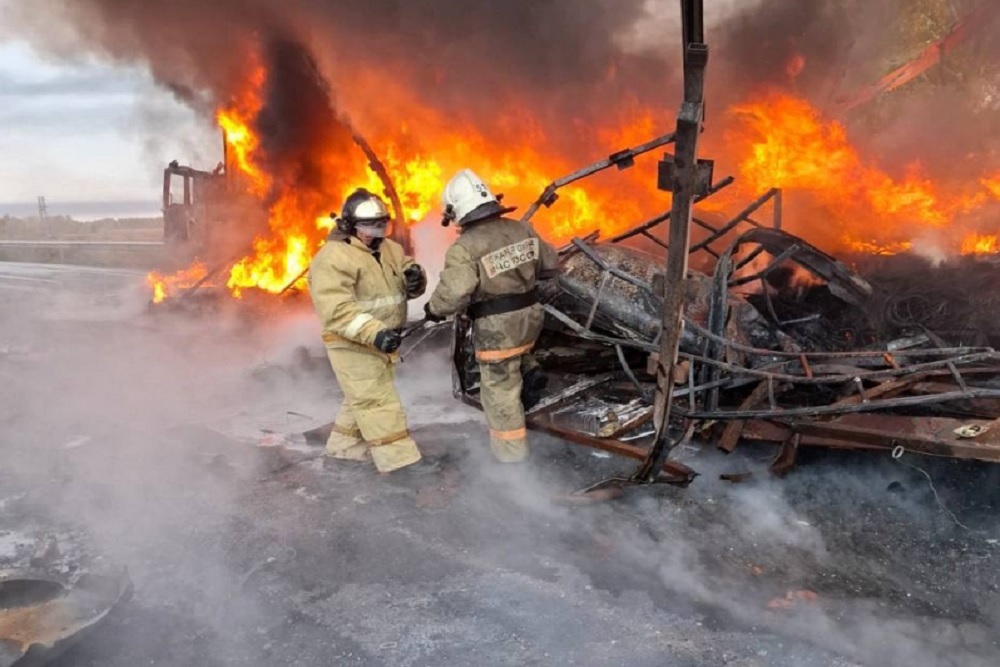 Как сообщили в региональном главке МВД, в результате ДТП два автомобиля - одна из фур и "Газель" - загорелись. Водитель "Газели" погиб на месте аварии.