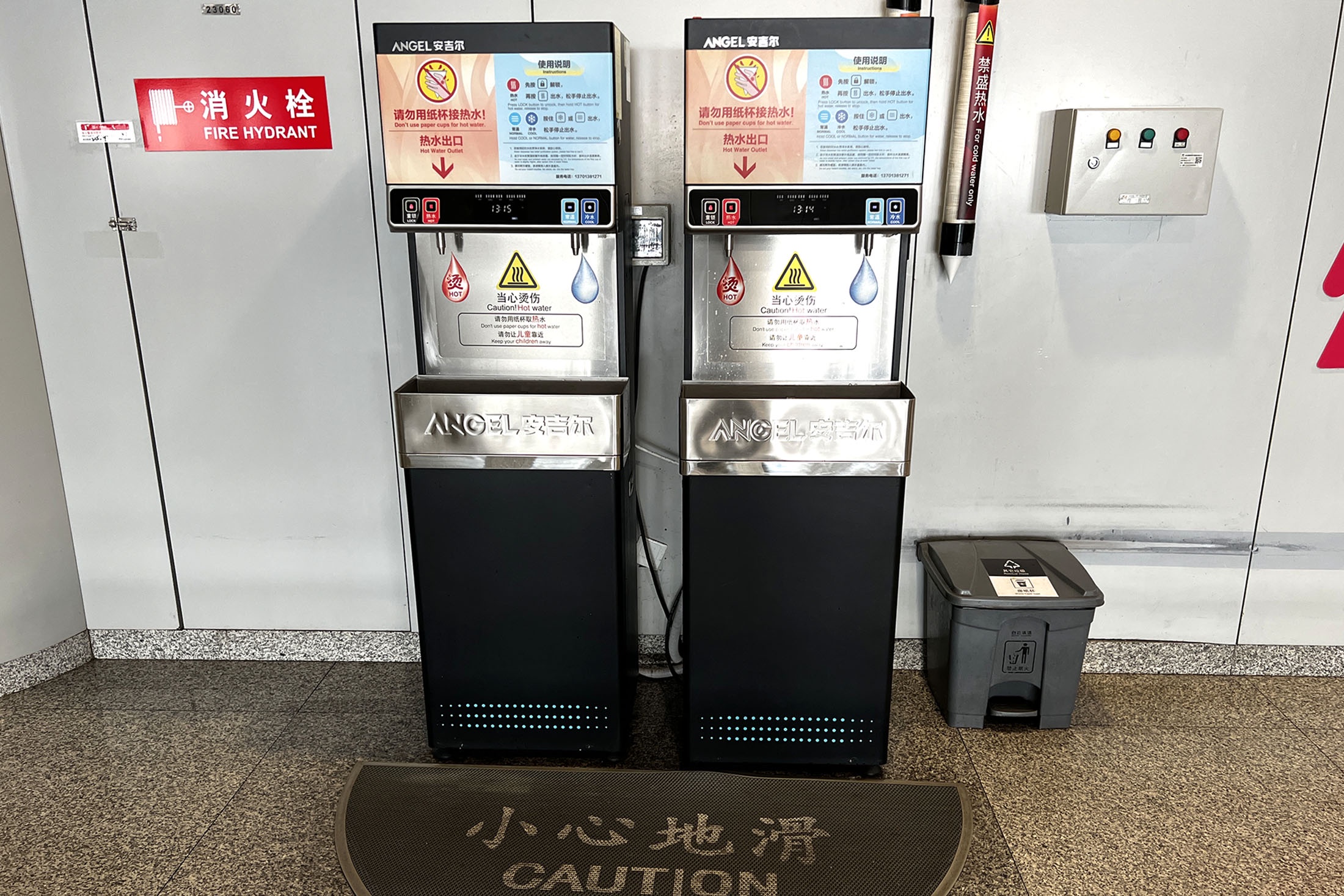 Всюду аппараты "Ангел": горячая и холодная питьевая вода. Зачем горячая? Тут же стоит вендинговый аппарат соки-воды, но в ассортименте еще и два вида лапши быстрого приготовления, по 7 юаней (80 рублей). И никакой ярмарки тщеславия: ешь то, что лично тебе по карману. Все так и делают, лапшу ест и бедный студент, и офицеры таможни.