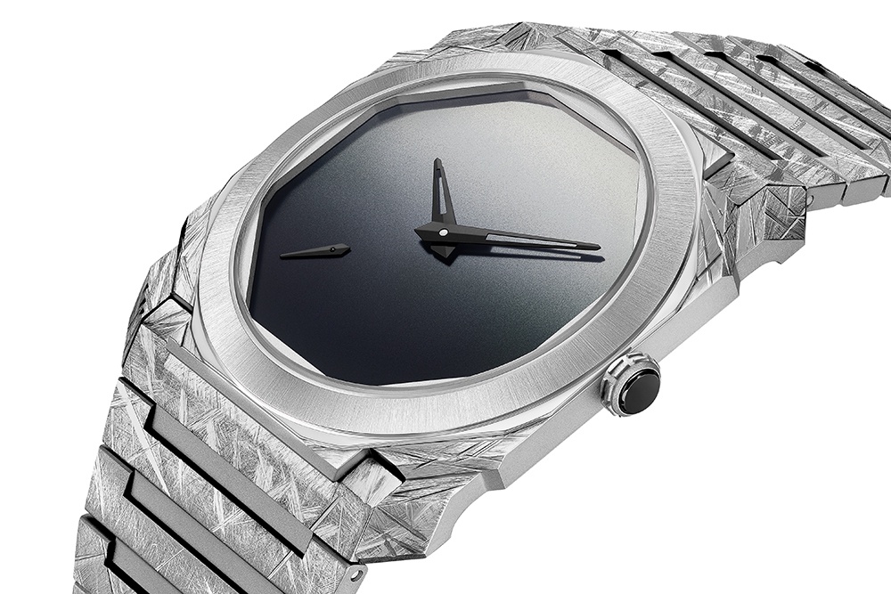 Необычная модель Octo Finissimo Lee Ufan x Bvlgari создана в сотрудничестве с художником родом из Кореи - Ли У Хваном. Ее дизайн основан на одной из ключевых тем художника: контрасте между статичным и ограниченным камнем и бесконечными отражениями зеркала.