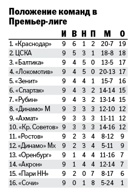 Калининградцы бурно ворвались в Премьер-лигу. Едва вернувшись в элитный дивизион, они сходу начали удивлять: ничья с "Динамо" (1:1), крупная выездная победа над "Спартаком" (3:0), игра на равных с остальными грандами, в том числе с "Зенитом" (0:0). "Балтика" выдала лучший старт среди клубов-новичков в истории российского первенства, не потерпев ни одного поражения в девяти турах.