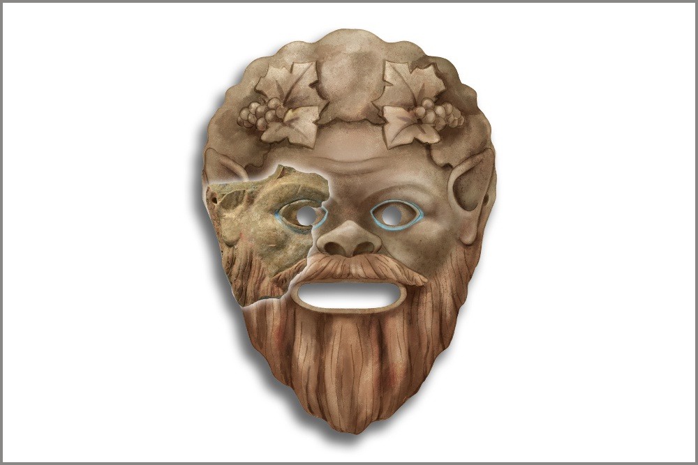 Античные маски были также неотъемлемой частью культа Диониса. В Фанагории почитание бога виноделия достигло апогея при царствовании Митридата VI Евпатора, считавшего его своим покровителем и носившего прозвище Дионис. Во время его правления изображения божества и его спутников встречались повсюду - на монетах, амфорных клеймах, статуэтках и чернолаковой керамике.