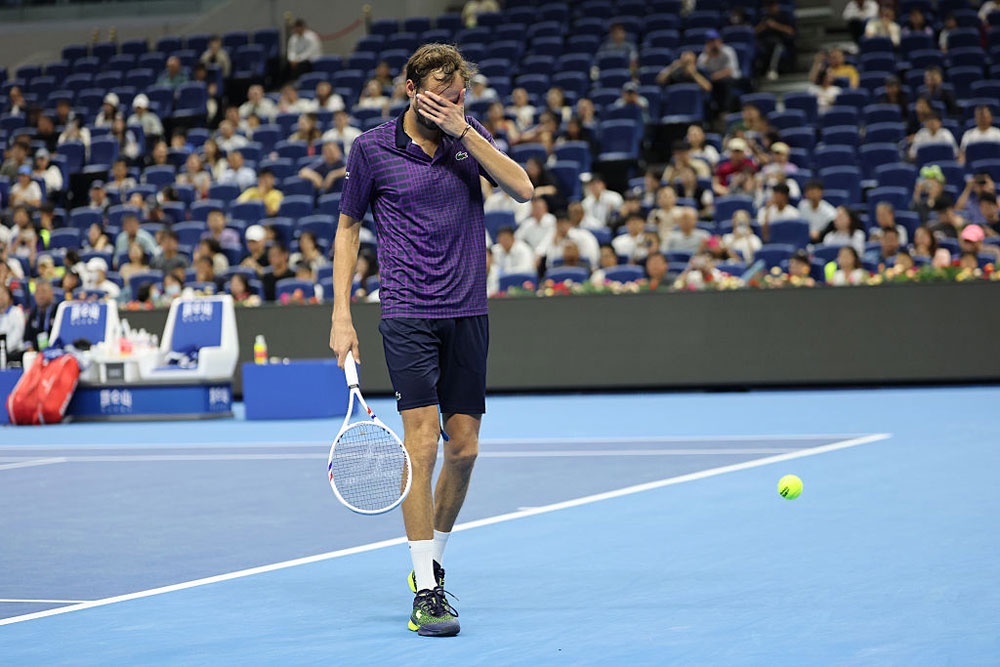 Во второй партии при счете 5:4 в пользу соперника Медведеву пришлось вызывать врача на корт из-за судорог. Он смог продолжить встречу, но сет остался за Тьеном - 7:5.