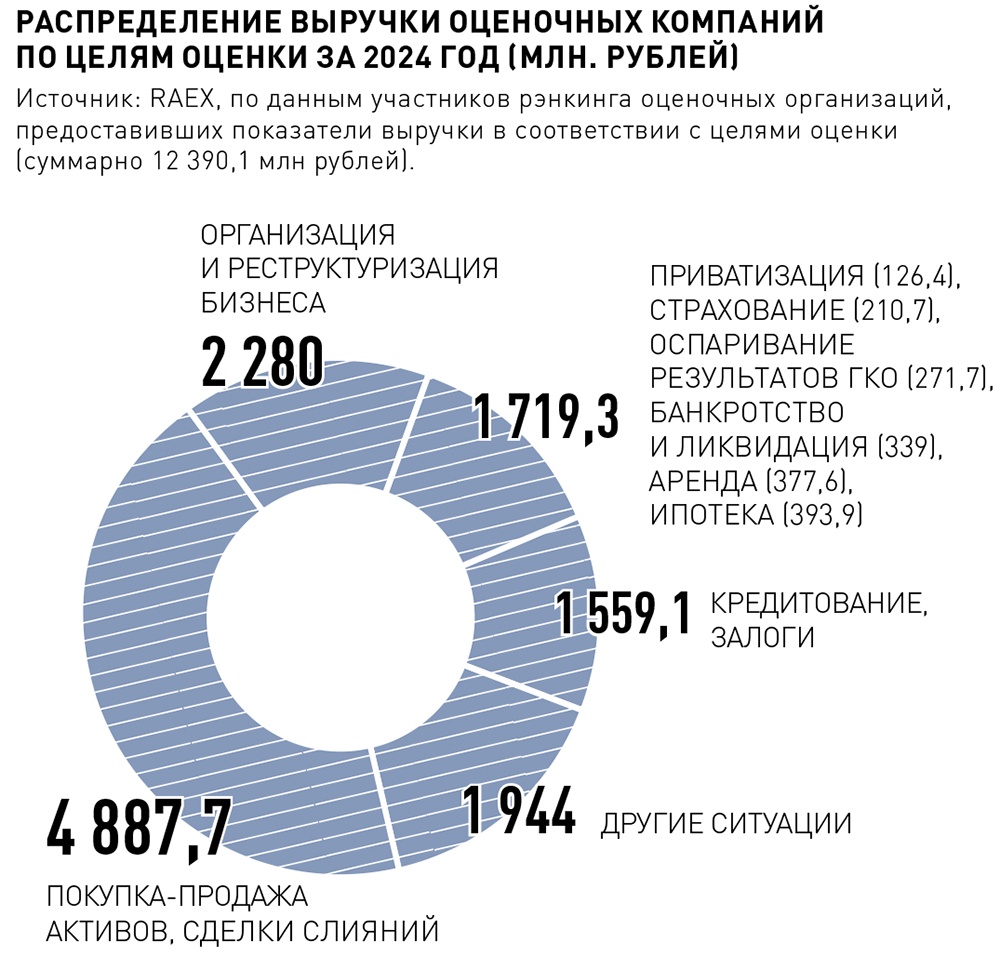 Еще как минимум 2,3 миллиарда рублей пришлось на оценку в рамках сделок по реструктуризации и организации бизнесов, а также 1,6 миллиарда рублей в целях кредитования и привлечения финансирования.