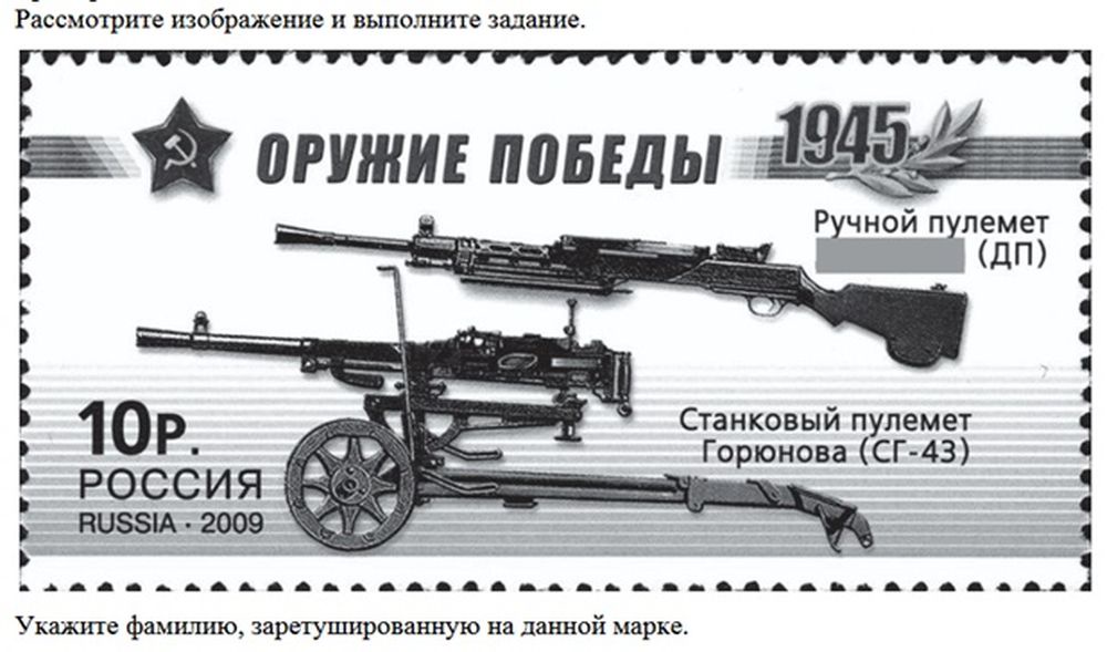Вместо правильного ответа - "Дегтярев", ученики указывали "Калашников", "Шпагин", "Горюнов".
