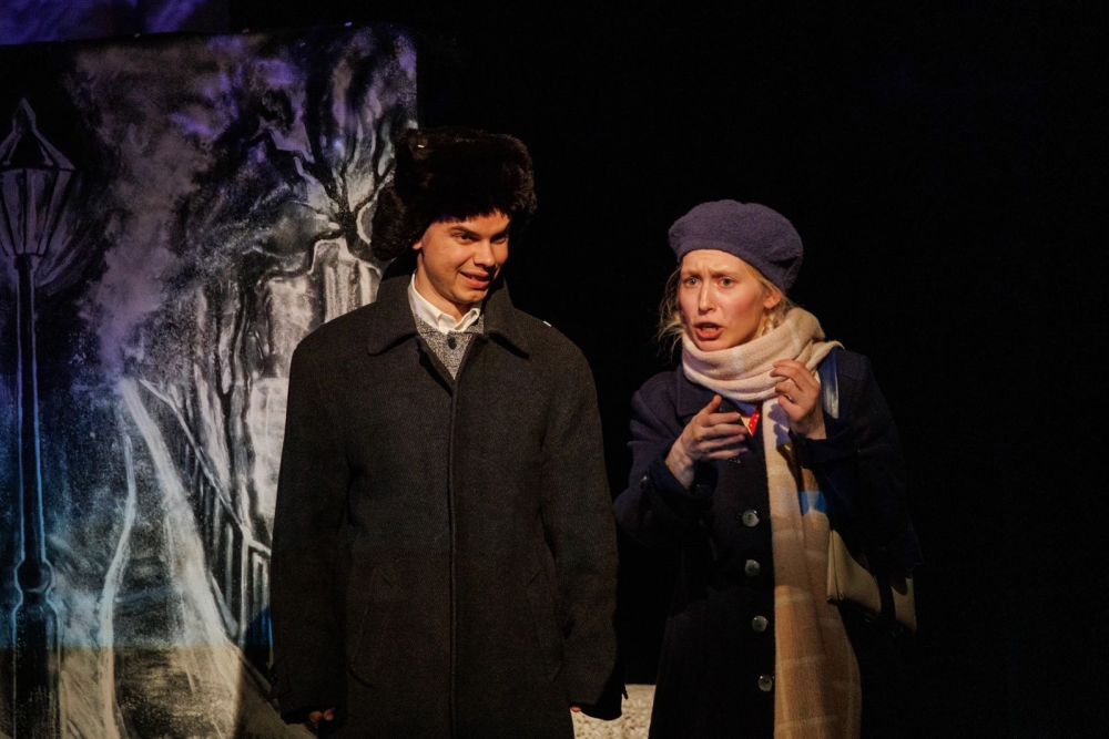Один из зрителей в своем отзыве написал, что Вольские очень точно передали воздух того времени. Предметный мир спектакля небогат - после войны у простых студентов было только самое необходимое. Одеты герои тоже по моде того времени (платья, костюмы и пальто как будто вынуты из бабушкиных сундуков). Расширяют пространство декорации, созданные талантливой молодой художницей Ангелиной Васильевой. На них изображены заснеженные аллеи, и когда свет падает под определенным углом, возникает ощущение 3D.