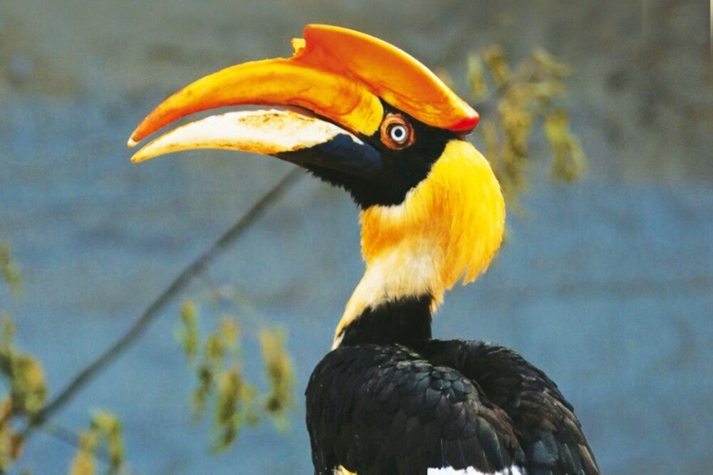 Двурогий калао считается самым крупным представителем рода двурогих птиц-носорогов: длина его тела может достигать полутора метров. Птицу отличают большой желтый клюв, нарост на голове и черно-белое оперение. В неволе калао могут прожить до 50 лет.