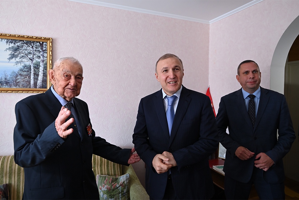 Руководителя региона сопровождали министр труда и соцзащиты РА Джанбеч Мирза и мэр Майкопа Геннадий Митрофанов. Глава Адыгеи поздравил ветерана с праздником, вручил ему ценные подарки, пожелал здоровья и всего самого доброго.