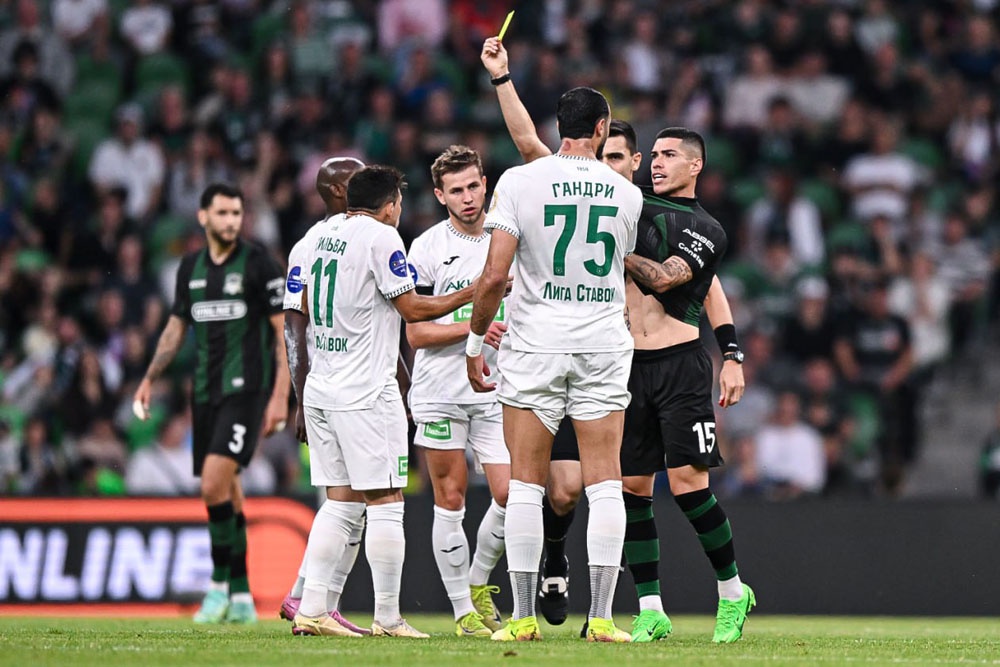 После подсказки ВАР и просмотра момента по видеомонитору главный судья встречи Инал Танашев из Нальчика показал Ндонгу красную карточку и удалил с поля, а Сперцяну вынес предупреждение "за провокационные действия".