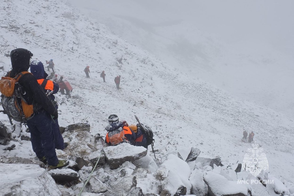Вертолет к 18 часам долетел до площадки на отметке 1500 метров и высадил там группу спасателей и медиков. Приземлиться возможности не было, поэтому им пришлось прыгать в снег. Медики в ночь остались ждать на гребне, а спасатели отправились выше.