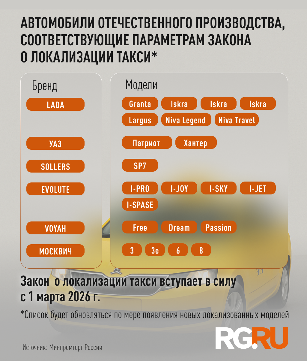 Напомним, ранее был опубликован первичный список автомобилей, соответствующих требованиям закона о локализации такси. В него вошли более 20 моделей шести российских брендов. Список будет обновляться по мере появления новых машин на рынке, производство которых будет локализовано в РФ в рамках специнвестконтрактов.