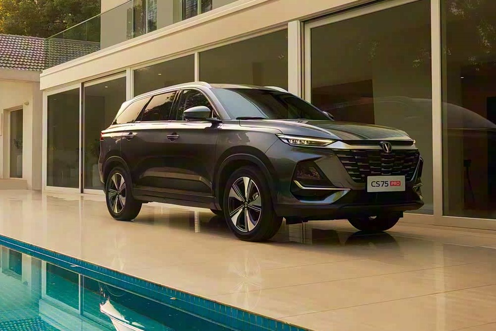 Changan CS75 Plus обновился, следуя последним трендам бренда. На передней панели автомобиля установлены крупные светодиодные фары с перемычкой между ними. Новинка имеет габариты 4770 мм в длину, 1910 мм в ширину и 1695 мм в высоту, а колесная база составляет 2800 мм. Внутри SUV расположен блок из трех мониторов и предусмотрено пять посадочных мест.