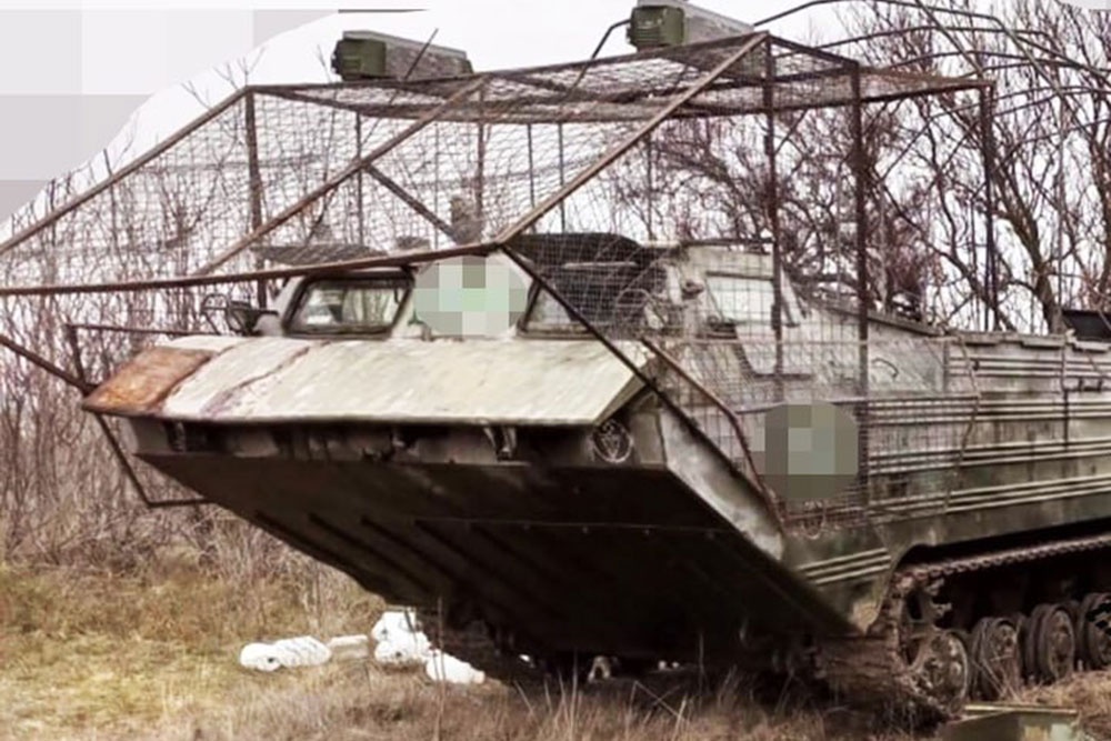 Впервые замечен плавающий транспортер ПТС-2 с "мангалом" и системами РЭБ