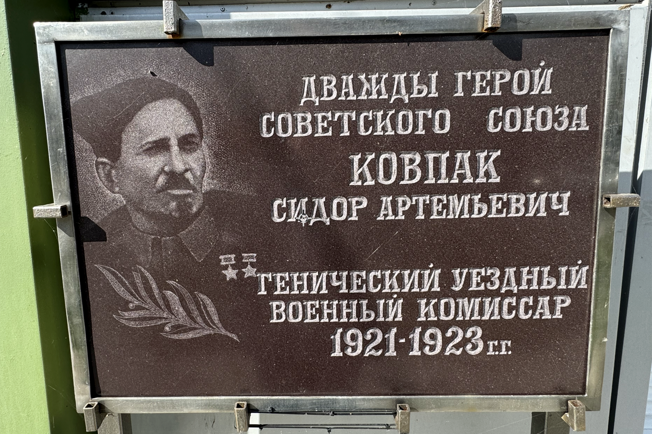 Когда узнали обо всем этом, решили придать этому месту историческое звучание и установить памятник военачальнику. От руководителя проекта "Аллея российской славы" Сердюкова Михаила Леонидовича получили в дар бюст знаменитой личности. Совместно с ведущей российской политической партией, городской администрацией перевезли и установили памятник, его торжественное открытие в присутствии губернатора Херсонской области состоялось в день рождения Сидора Артемьевича 7 июня. И это добрый знак! Геничане чтят свою историю, знают, что основала Херсон Екатерина II, что судьба региона - неразрывная составная часть России. Уверен, настанет день, когда и другие регионы "незалежной" вспомнят свои корни, когда и за что боролись их деды и прадеды. И тогда власть нынешнего неонацистского режима непременно закончится.