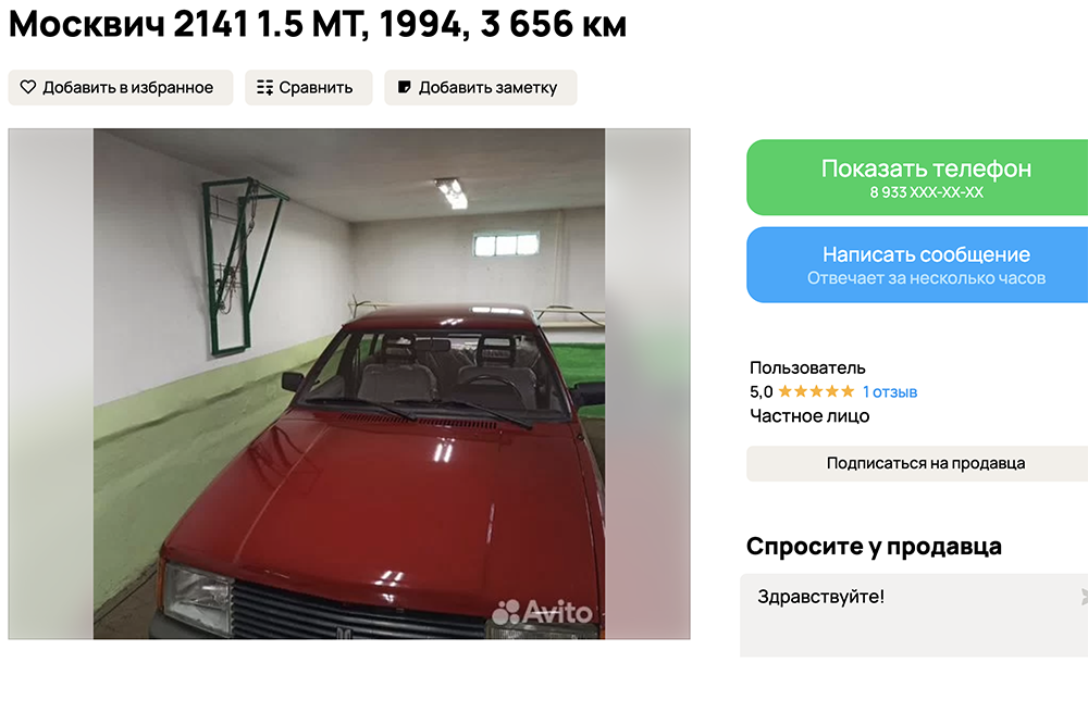 В РФ начались продажи нового "Москвич-2141": 30 лет, без пробега, дешевле Granta