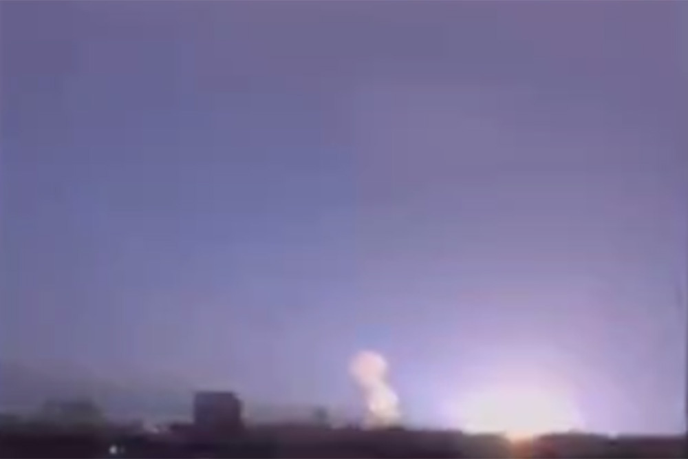 Очевидцы сняли момент прилета, после которого небо озарила синяя вспышка, характерная для взрыва трансформатора.