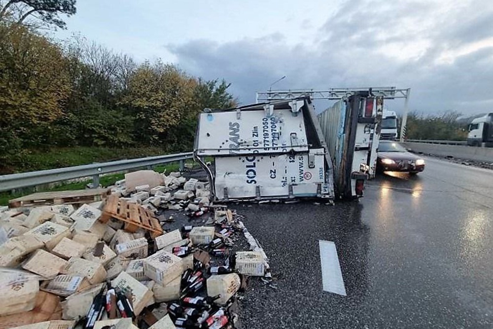 Грузовик вез вино из Грузии в Москву. Наутро 13 октября поврежденную фуру убрали с проезжей части, движение на участке дороги восстановили.