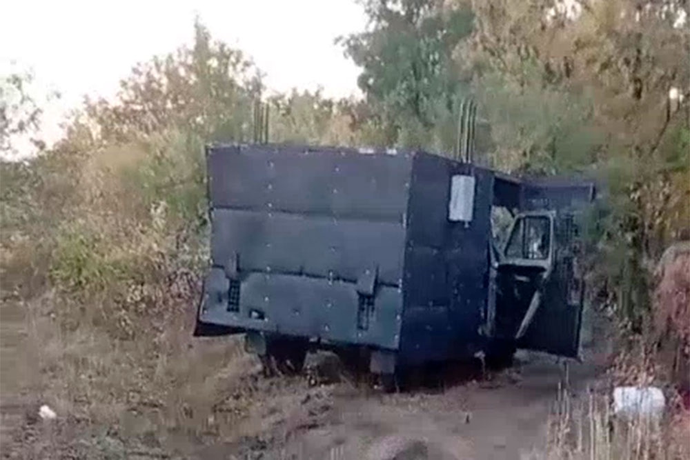 Интересная версия показана в Telegram-канале "Непокорный Донбасс Z". С первого взгляда сразу и не поймешь, что за автомобиль спрятан за "панцирем", выполненным из плотной резины, прикрывающим корму, борта, переднюю часть и крышу. Для того чтобы обзор у водителя оставался приемлемым, в пространстве над капотом закрепили сетчатый экран. Имеются также средства РЭБ. Все эти усовершенствования позволяют более безопасно осуществлять передвижения в местах действий вражеских БПЛА.