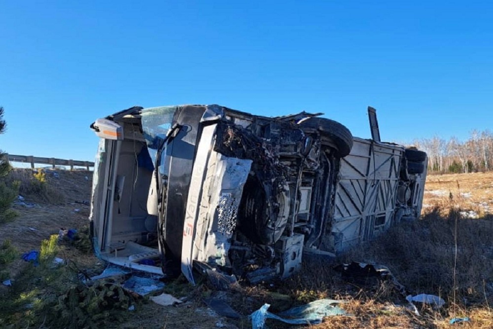 "По предварительной информации, в результате выезда на встречную полосу движения произошло столкновение автомобиля марки Toyota Probox и пассажирского автобуса, перевозившего более 50 человек, которые трудятся вахтовым методом на амурском газохимическом комплексе, после чего автобус съехал с проезжей части и совершил опрокидывание", - говорится в сообщении прокуратуры.