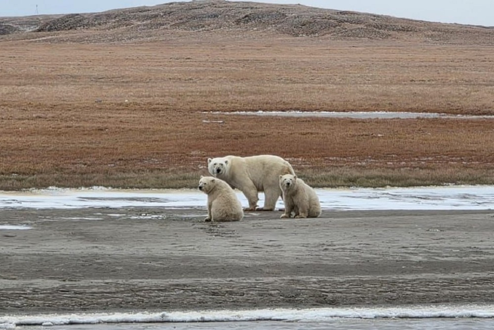 "С середины августа белые медведи регулярно появляются у морского побережья либо спокойно перемещаются неподалеку от инспекторского кордона", - отчитался Руслан Слепцов.