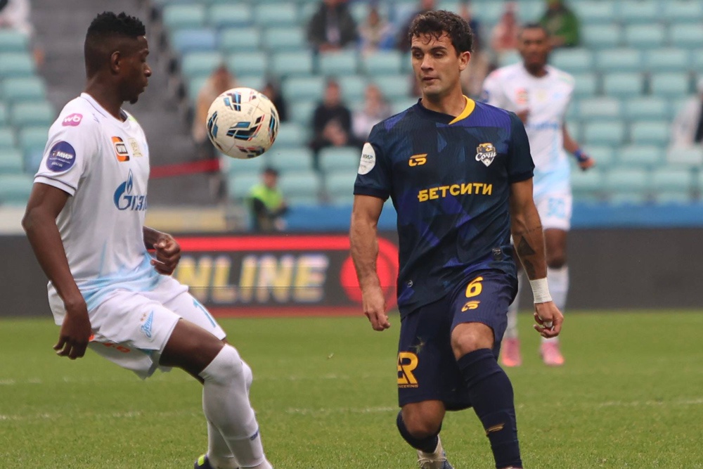 И действительно, хозяева под руководством Игоря Осинькина вышли на поле олимпийской арены "Фишт" явно настроенными на то, чтобы попытаться дать сражение куда более классному сопернику. Но продержались "барсы" совсем немного, так как петербуржцы сразу заперли их в штрафной и принялись расшатывать оборону южан. Особенно трудно пришлось правому защитнику Сергею Волкову (к слову, находящемуся в аренде экс-игроку "Зенита"), которого форвард бразильской сборной Луис Энрике буквально затерзал хитроумными финтами.
