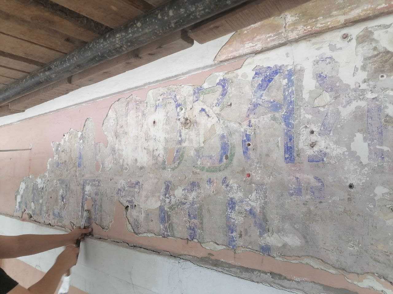 Кстати, обнаруженная надпись не единственная. Под "Казбеком" проглядывают еще две надписи более раннего времени с более изящными дореформенными буквами.