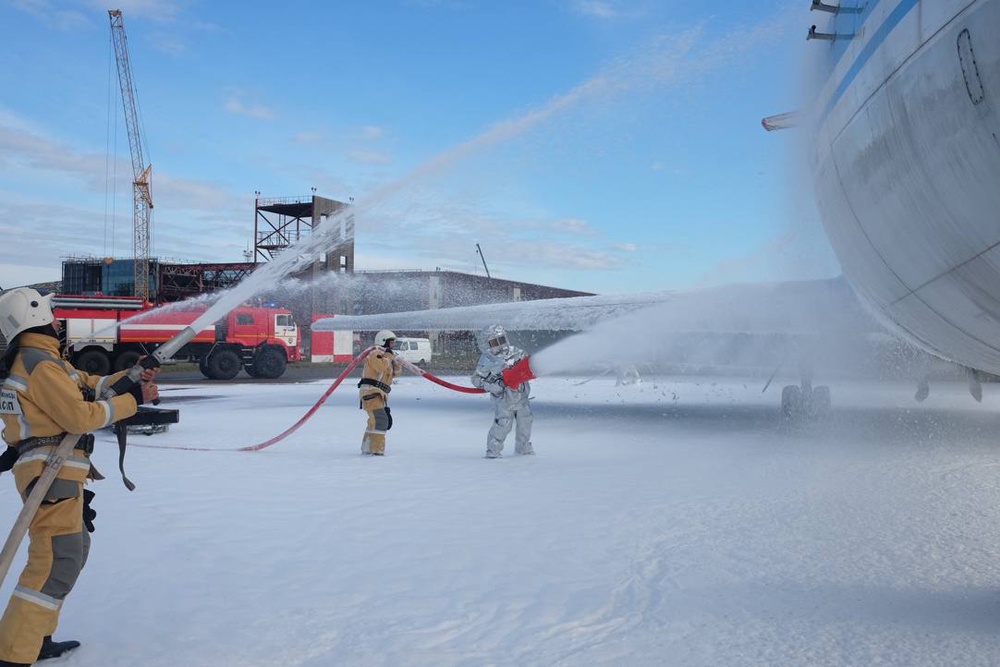 Отмечается, что роль пострадавшего судна сыграл "ветеран" аэропорта - тренировочный Як-42 (несколько списанных самолетов этой модели и сегодня можно увидеть на территории воздушной гавани), используемый для подобных тренировок.
