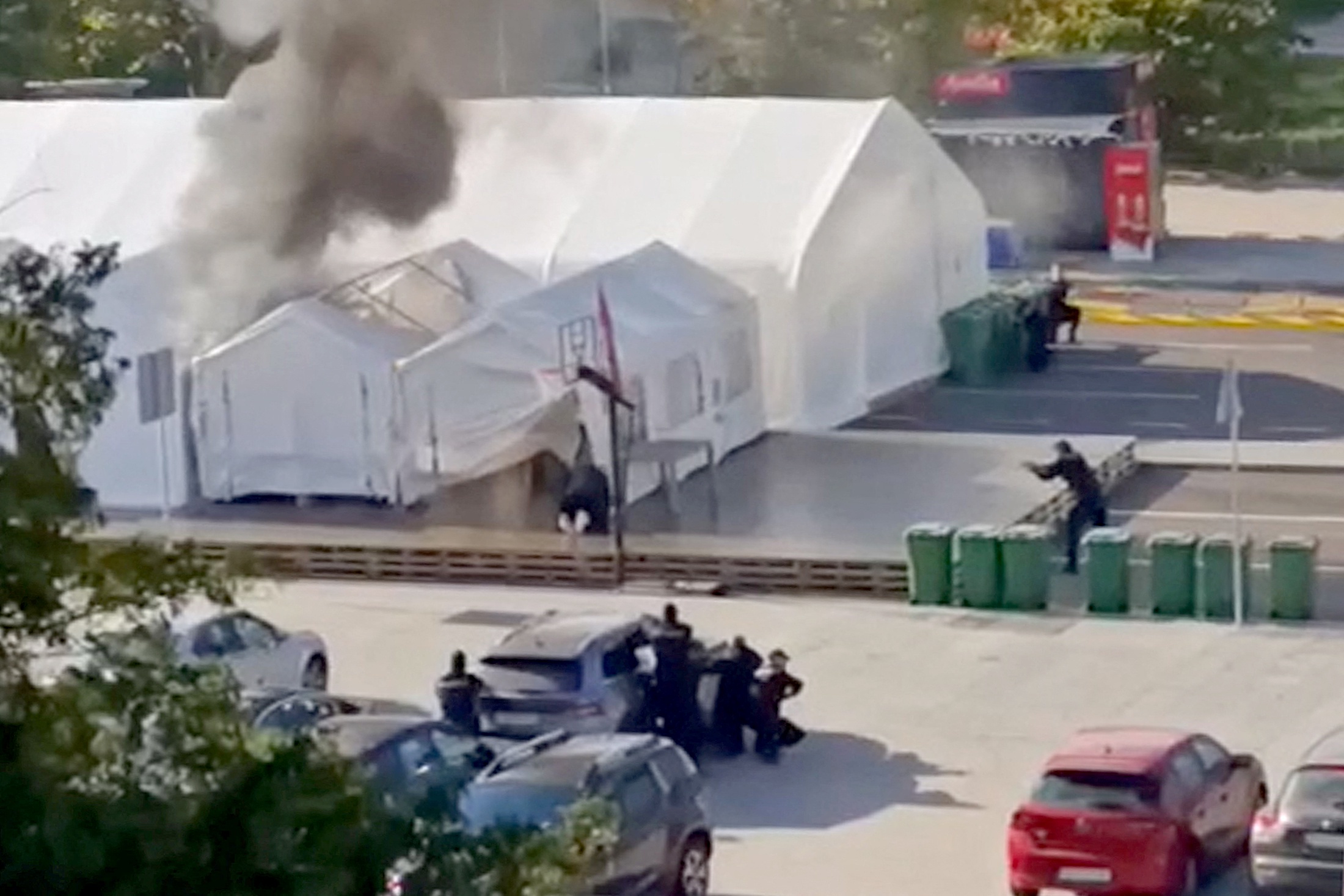 После этого он поджег одну из палаток сторонников президента Сербии Александра Вучича, установленных перед парламентом. Преступник также бросил в огонь несколько патронов.