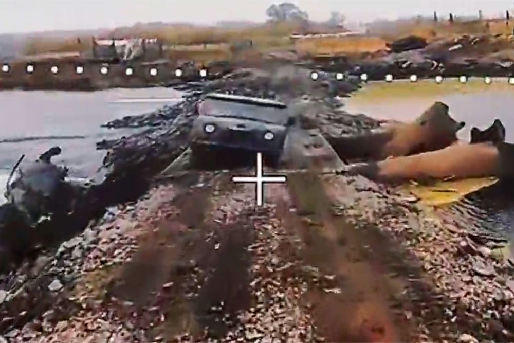 Его остов создал своеобразный затор: двигавшиеся следом два пикапа ВСУ не смогли переправиться и замерли без движения. Как оказалось, на одном из них была установлена 128-мм РСЗО RAK-12, поставленная из Хорватии. Второй, как можно предположить, перевозил снаряды к ней. Обе машины были атакованы нашими БПЛА и сгорели.