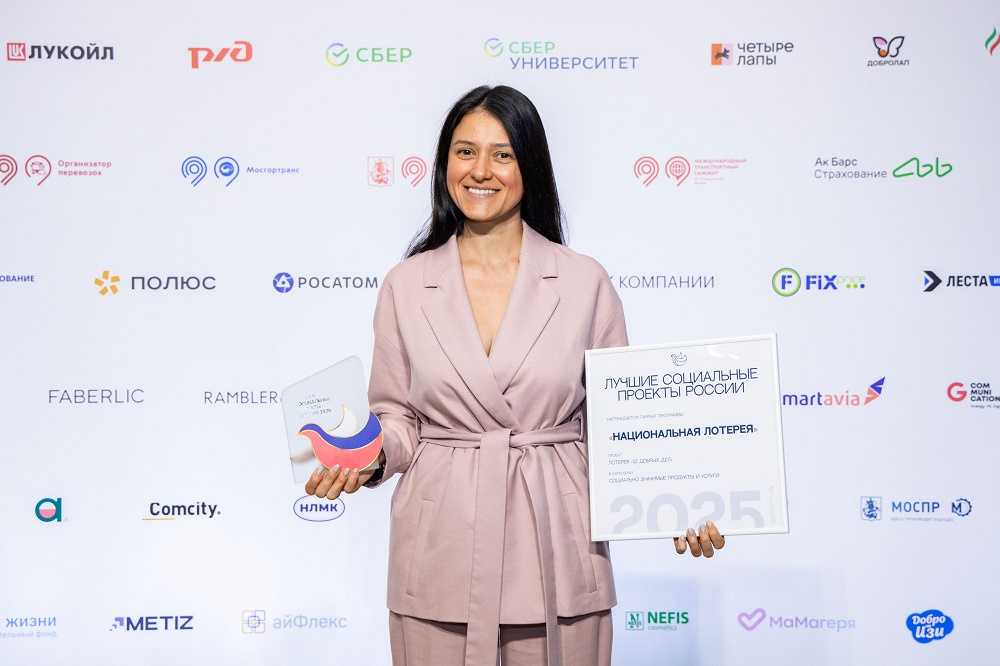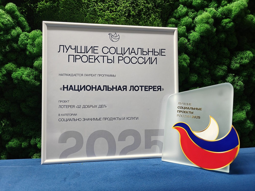 "Национальная Лотерея" и её благотворительная лотерея "12 Добрых дел" стали лауреатами премии "Лучшие социальные проекты России" в категории "Социально значимые продукты и услуги".
