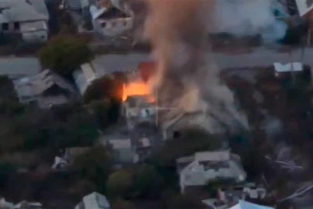 После удара "Молнии" над домом с боевиками ВСУ поднялось огненное облако