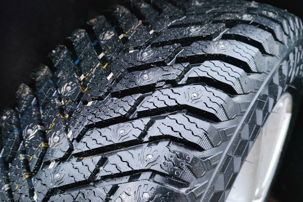 Есть и интересные решения - в протекторе реализован запатентованный ступенчатый индикатор уровня износа, а также фигурные элементы рисунка вокруг шипов, собирающие ледяную крошку с эффектом щетки.