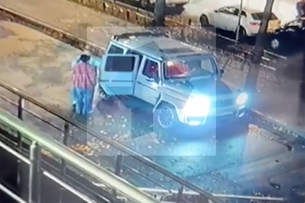 На кадрах видно, как мужчина высаживает из автомобиля человека и возвращается, чтобы обратно сесть в машину. В этот момент из черного Land Cruiser, который был припаркован рядом, выбегает группа мужчин, которая хватает его и тащит в свою машину.