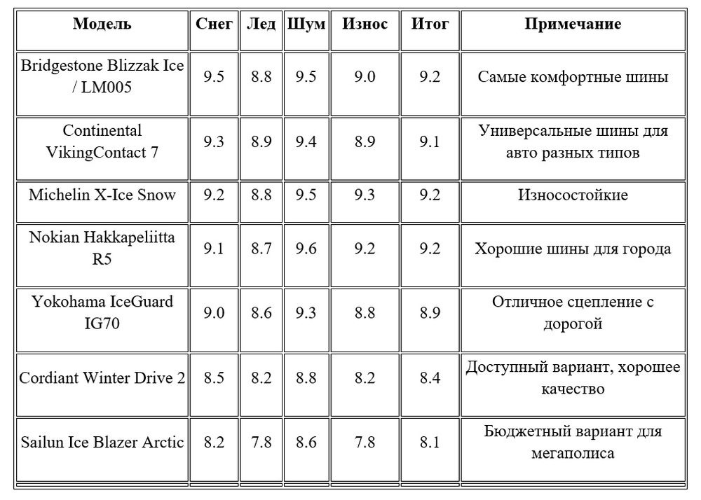 Примечание: данные усреднены на основе тестов 2024-2025 годов от "За рулём", AutoReview, AutoBild, DTF, Auto.ru, Drom, Nokian, Michelin. Оценка - по пяти критериям: сцепление, торможение, шум, износ, комфорт.