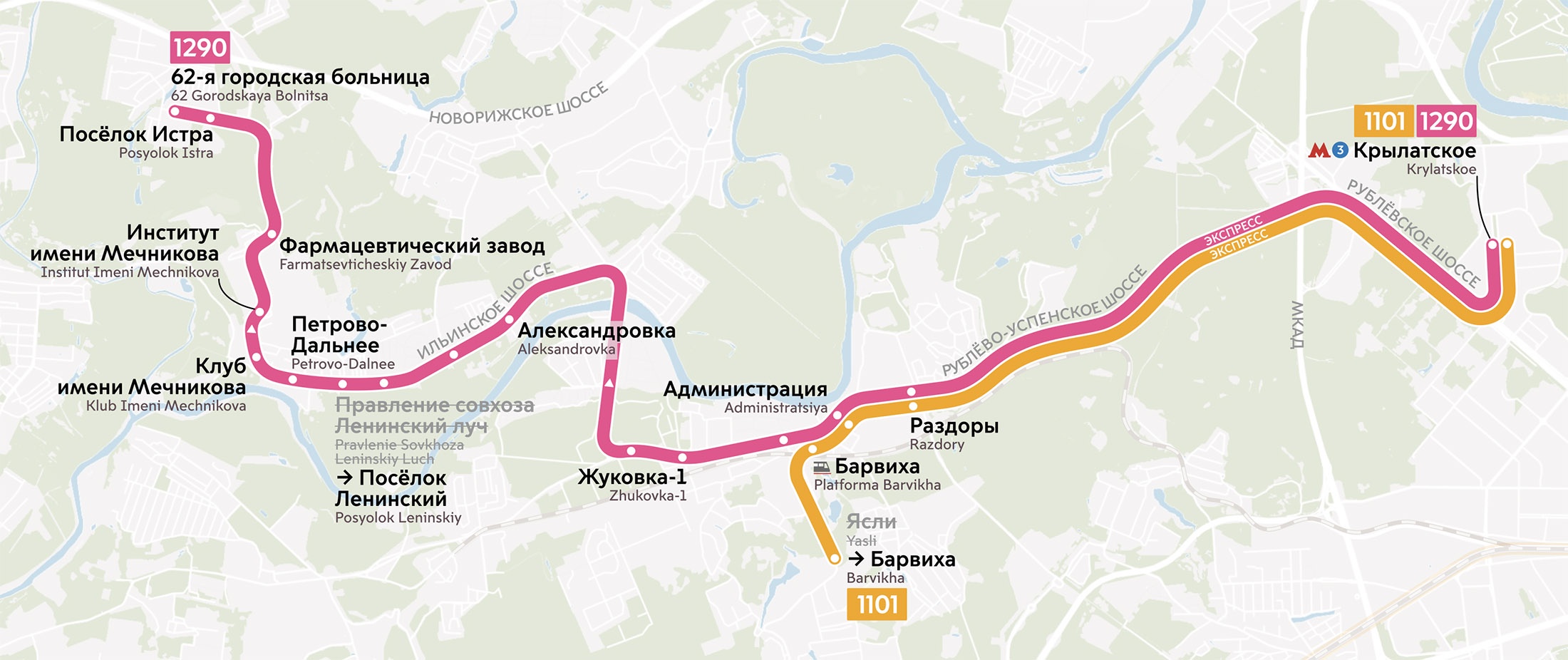 "По поручению мэра Москвы Сергея Собянина мы развиваем сеть пригородных маршрутов московского транспорта. Новые маршруты заработают с 8 ноября и свяжут Москву с городскими округами Одинцово и Красногорск. Современные автобусы проследуют от метро "Крылатское" в Барвиху и поселок Истра. В ближайшие недели планируем запустить еще 2 маршрута в Одинцовский городской округ", - рассказал заместитель мэра Москвы по вопросам транспорта и промышленности Максим Ликсутов.