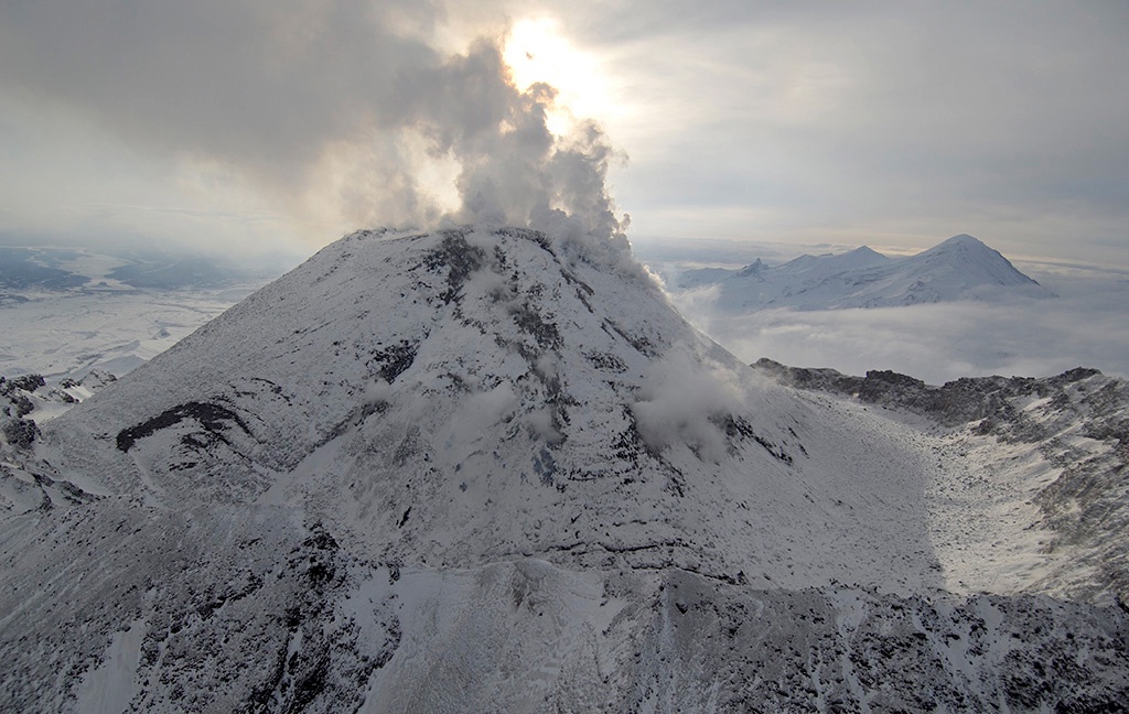 Стратовулкан Безымянный расположен вблизи Ключевской сопки и считается одним из самых активных в мире. Последние извержение произошло 25 июля 2024-го. Тогда столб пепла поднимался на высоту до 12 километров.