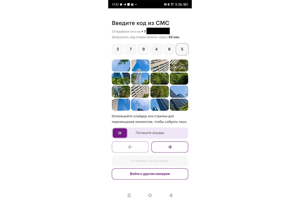 Минут через 30-40 сервис "починился" и после введения номера прислал SMS для решения капчи. И она, надо признать, очень сложная. Это не кривые буквы на размытом фоне - их роботы уже научились обходить, а заумная мозаика, которую необходимо сложить передвижением ползунка.