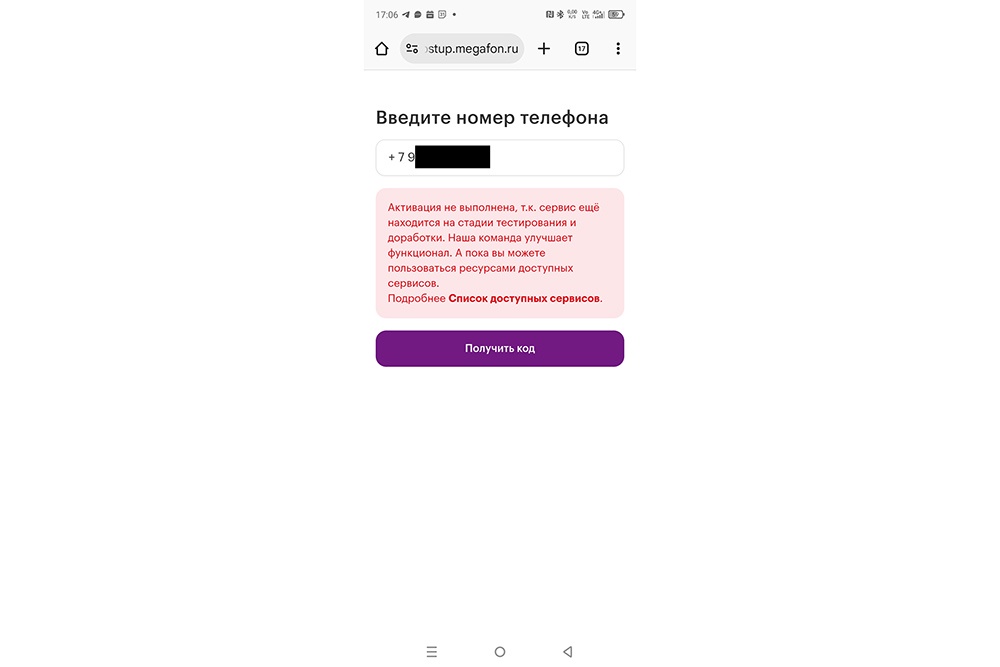 В качестве альтернативы "Мегафон" предлагал перейти по ссылке для прохождения верификации, но сайт при введении цифр номера выдавал ошибку.