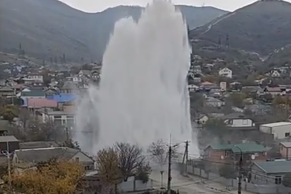 Глава Новороссийска Андрей Кравченко опубликовал в Telegram-канале видео аварии. На нем видно, как фонтан воды бьет из-под земли на высоту не менее трех метров.
