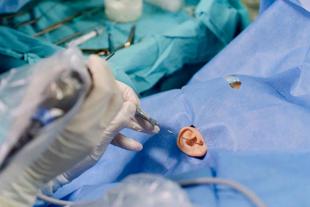Новая технология выглядит следующим образом. Биомедицинский клеточный продукт (БМКП) формируют в Проектно-производственном центре Научно-технологического парка биомедицины: из жировой ткани пациента выделяют клетки и объединяют их в сфероиды. Затем их имплантируют в перепонку вместе с мембраной. В ухе пациента она постепенно рассасывается, а на ее месте формируется собственная ткань, идентичная по структуре и функциям естественной перепонке.