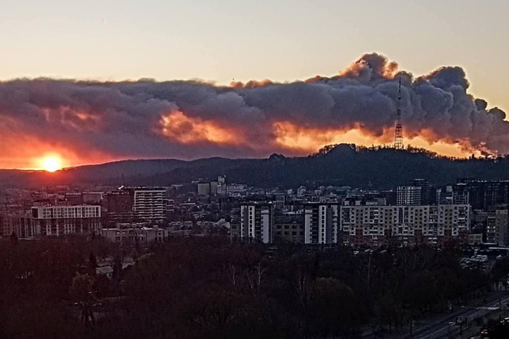 На кадрах, опубликованных в Telegram-канале "Изнанка", можно увидеть, как многокилометровые столбы дыма тянутся от Львова до Сосновки и от Тернополя до Почаева.