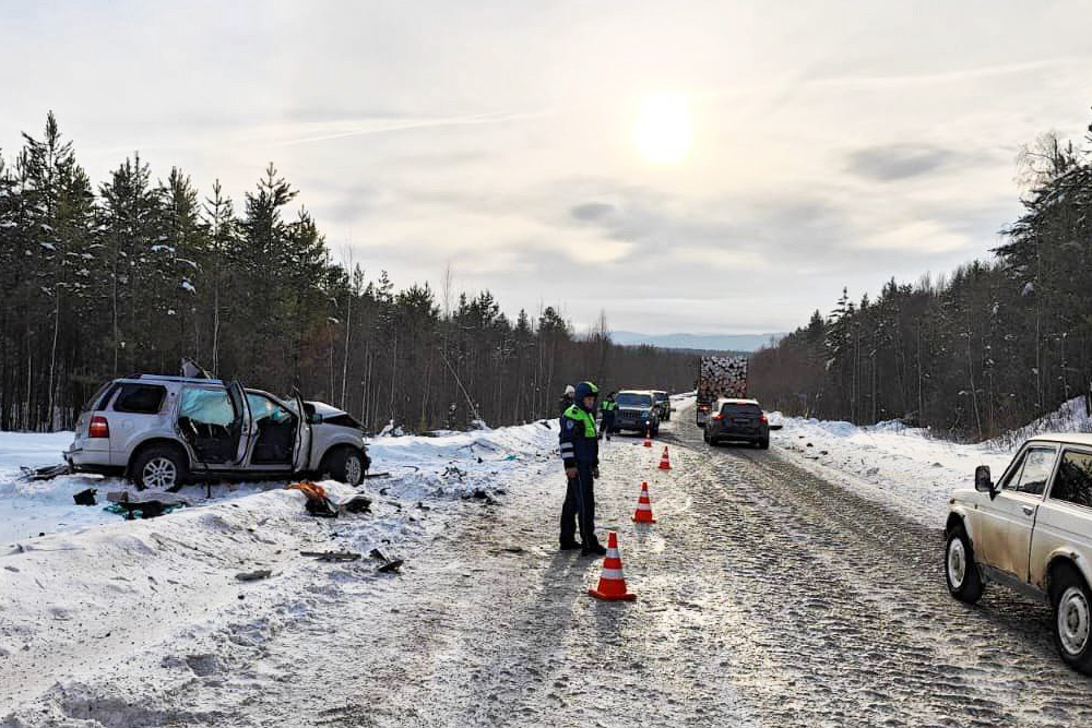 По информации ведомства, полуприцеп грузовика вынесло на полосу встречного движения, и он задел Ford Explorer. Водитель иномарки и его 15-летний сын получили смертельные травмы. Еще двум пассажирам кроссовера потребовалась помощь врачей.