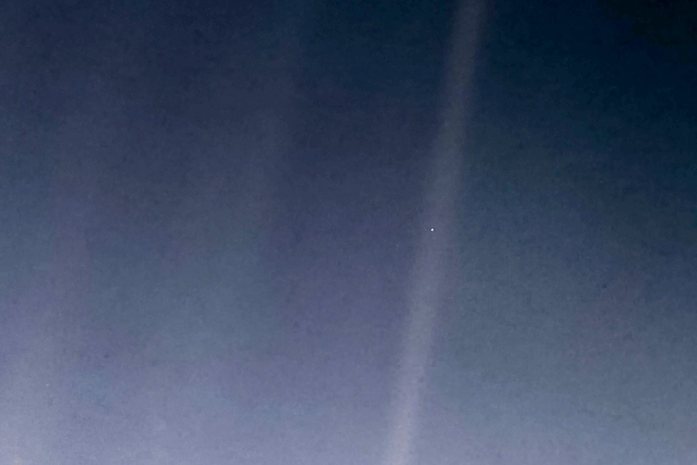Напомним: 13 февраля 1990 года космический аппарат "Вояджер-1" достиг границ Солнечной системы и впервые сфотографировал ее "со стороны". Самая знаменитая из сделанных фотографий - изображение Земли в виде трогательной "бледно-голубой точки" на зернистом снимке. Расстояние, с которого был сделан снимок, примерно 6,05 млрд км!
