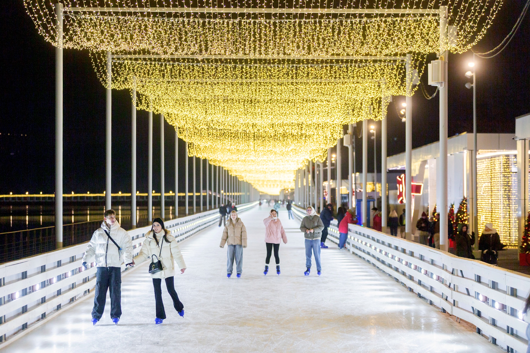 Это самый протяженный каток в городе - его длина составляет 1,7 км. Общая площадь ледового покрытия - 13,5 тысячи кв. м. Одновременно на нем смогут кататься 2,5 тысячи человек. А еще он знаменит тем, что украшает его "Звездное небо" из 14 миллионов светодиодов, которые поддерживают 400 опор. На разных участках трассы предусмотрено три входа и выхода, оборудовано 12 турникетных групп с безопасным резиновым покрытием.