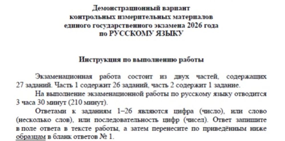 Перед вами демонстрационный вариант ЕГЭ 2026 по русскому языку с официального сайта ФИПИ: