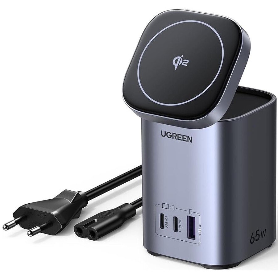 Более компактная альтернатива - зарядное устройство UGREEN X555 мощностью 65 Вт с двумя портами USB-C, которое поддерживает протоколы Power Delivery, Qualcomm Quick Charge и Huawei FCP. Поддерживается технология интеллектуальной зарядки, которая автоматически распределяет мощность между подключенными устройствами.