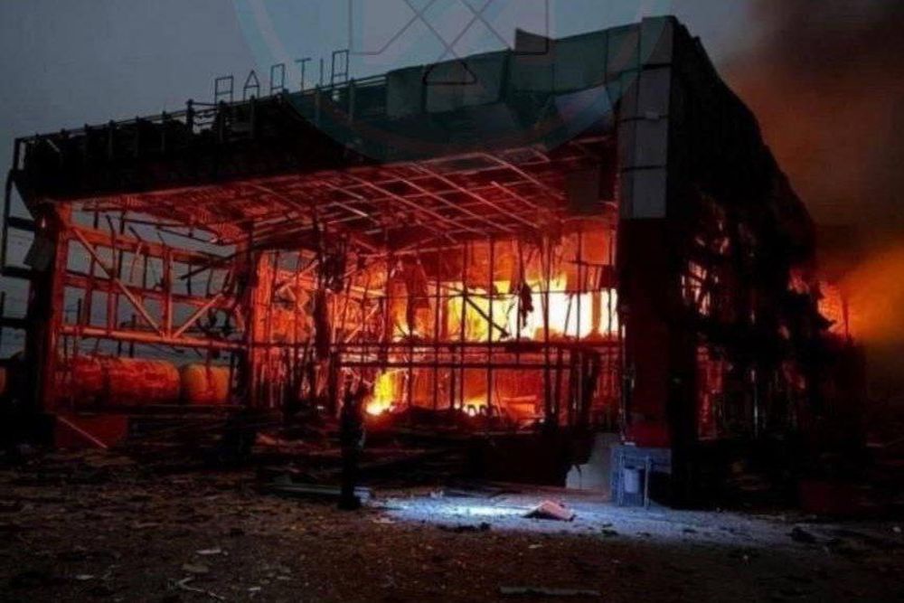 После атаки дронов на железнодорожной станции возник крупный пожар, продолжавшийся всю ночь и уничтоживший здание вокзала.