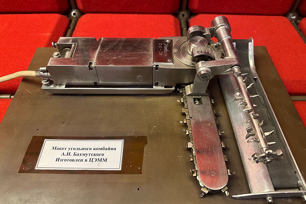 Итак… Модель первого советского проходческого комбайна Б-6-39, изобретенного Алексеем Бахмутским в 1932 году. Это первая машина в мире, совершившая прорыв мирового масштаба в горном деле и одновременно выполнявшая зарубку, отбойку и навалку угля в забое. До комбайна Бахмутского ни одна машина на планете не могла выполнять все эти операции одновременно с невероятно высокой производительностью.