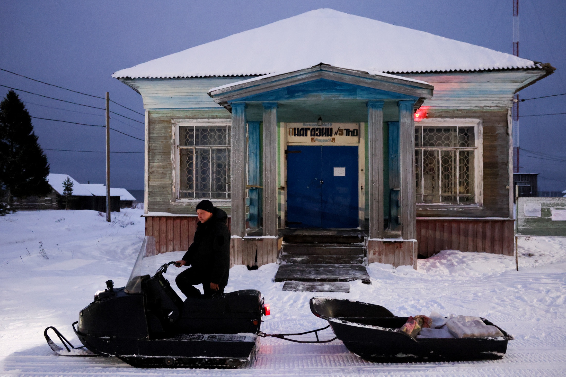 По деревне многие ездят на снегоходах, советский "Буран" - можно сказать, основная машина-помощник. Если махнуть рукой, едущий остановится и меня, незнакомца, подвезет. Потому, что тут я свой, ведь чужие здесь не ходят.
